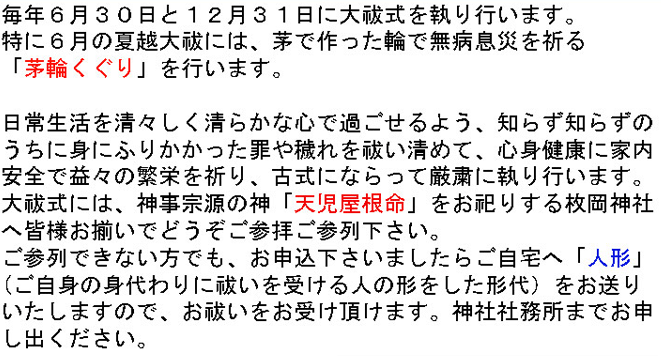 平成24年度 夏越大祓のご案内